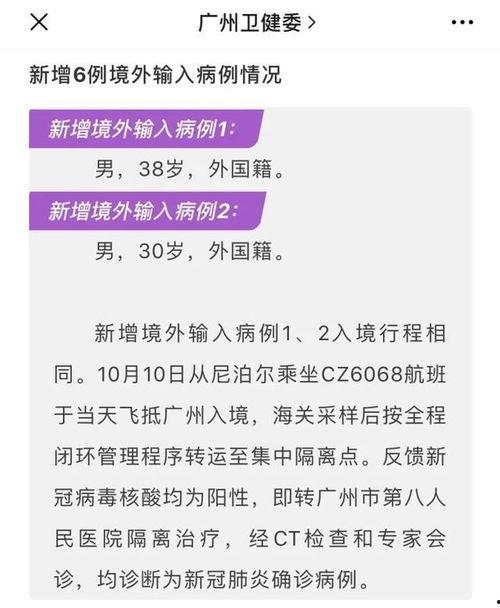 最近广州的疫情情况可是牵动着大家的心呢!这不,刚刚又有最新的爆料出来了,咱们得好好聊聊这个话题。你有没有听说,广州的疫情又有新动向了?别急,让我带你一探究竟!